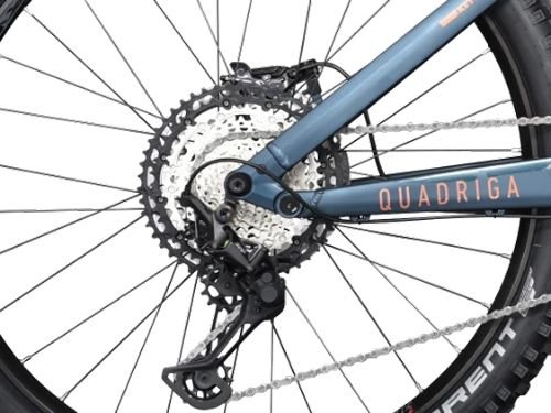 Bestwerte hinsichtlich Federweg und Reichweite sorgen beim Kettler QUADRIGA DUO CX12 FS für endloses Trail Vergnügen. Die innovative Integration der beiden PowerTube-Akkus mit insgesamt 1250 Wattstunden, ermöglicht eine hohe Ausdauer; im Downhill überzeugt das Bike dann mit 150 mm Federweg vorne wie hinten sowie absenkbarer Sattelstütze. Die moderne Geometrie mit langem Oberrohr und kurzem Vorbau ermöglicht ein handliches Lenkverhalten sowie sicheren Geradeauslauf; mit voluminösem 27,5 Zoll Reifen hinten und etwas schmalerem 29er vorne erreicht das Trailbike die perfekte Balance aus Traktion und Spurführung. SHIMANO Deore XT-Kettenschaltung mit zwölf Gängen und standfesten Scheibenbremsen sind die mit dem Antriebsakku gekoppelten Steckplätze für MonkeyLink-Leuchten ein wichtiges Sicherheitsmerkmal.