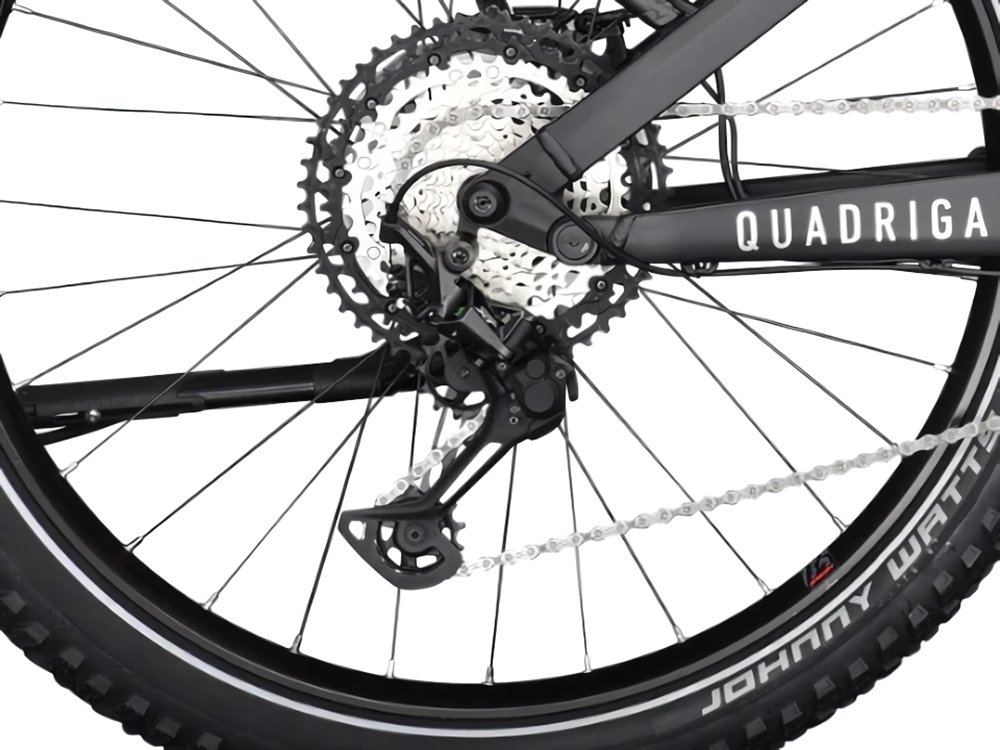- Shimano Deore XT 1×12-fach Schaltung mit breiter Abstufung