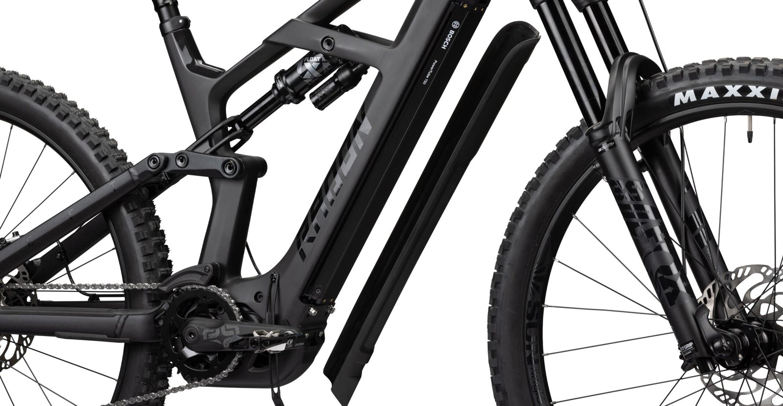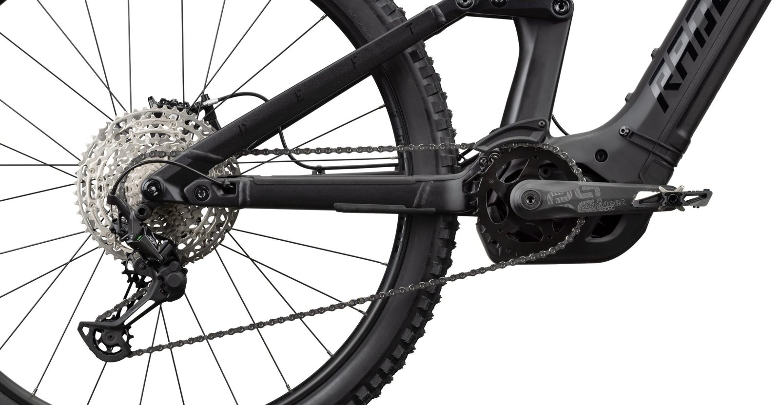 Der DEFT Rahmen ist eine absolute Augenweide und ist technisch mit neuesten Finessen ausgestattet. Mit 170 mm Federweg an Front und Heck bieten wir nicht nur ein reinrassiges E-Enduro, sondern auch enorme Reserven im Trail und sorgen somit für eine Menge Fahrspaß. Für den cleanen Look sorgen die komplett durch den Steuersatz verlegten Züge und Leitungen. Ebenfalls verfügt dieser über eine Block-Lock-Funktion, wodurch Folgeschäden im Falle eines Sturzes verhindert werden. Der flügelähnliche Überwurf, welcher Ober- und Unterrohr verbindet, punktet nicht nur optisch, sondern bietet auch in technischer Hinsicht ein absolutes Highlight. Sowohl der Carbon-Hauptrahmen als auch die Trunnion-Dämpferaufnahme bewirken eine Menge Steifigkeit und Stabilität. Wie auch beim RENDER bietet die untere Dämpferaufnahme gleichzeitig einen Teil der Wippe, die dem Rahmen eine einzigartige Kinematik und besonders hohe Stabilität des Hinterbaus verleiht. Der 750 Wh große Akku wird durch eine Patrone in das Unterrohr integriert, die für geräuscharmes Fahren und einen wackelfreien Sitz sorgt. Durch eine gummierte Abdeckung, die das Unterrohr abschließt, lässt sich der Akku problemlos und schnell entnehmen. Mit Hilfe der am Sitzrohr befindlichen Ladebuchse lässt sich der Akku ohne Entnahme laden. Das Schaltwerk wird am neuen, herstellerübergreifend genormten UDH Hanger montiert, der Speedsensor ist elegant in der Bremsscheibe und Kettenstrebe integriert, sodass der klassische Speichenmagnet der Vergangenheit angehört.